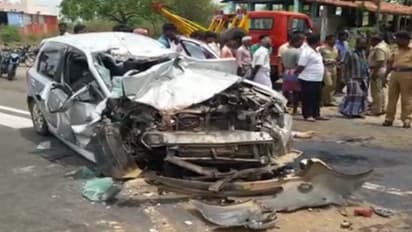 பெரம்பலூர் அருகே கார் மீது லாரி மோதியதில் ஒரே குடும்பத்தை சேர்ந்த 3 பேர் உயிரிழந்த சம்பவம் சோகத்தை ஏற்படுத்தியுள்ளது.