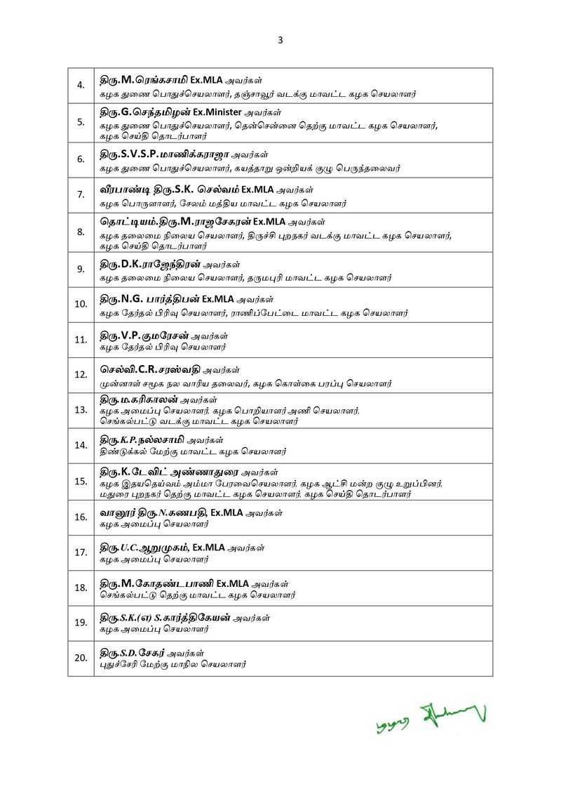 3. C.சண்முகவேலு Ex.Minister கழக துணை பொதுச்செயலாளர், திருப்பூர் புறநகர் மாவட்ட கழக செயலாளர்