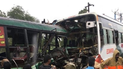 மேலும் படுகாயமடைந்தவர்களை மீட்டு சிகிச்சைக்காக மருத்துவமனைக்கு அனுப்பி வைத்தனர். விபத்தில் சிக்கிய பேருந்துகளை கிரேன் மூலம் மீட்கும் பணிகள் தீவிரமாக நடைபெற்று வருகிறது.