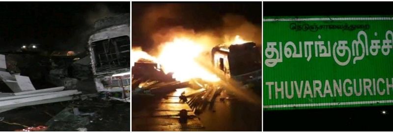 இதையடுத்து சம்பவ இடத்திற்கு சென்ற துவரங்குறிச்சி தீயணைப்புத் துறையினர் தீயை அணைக்கும் பணியில் ஈடுபட்டனர். ஆனால் தீயானது கட்டுக்குள் வராத காரணத்தால் மற்ற பகுதியில் இருந்து வந்த தீயணைப்பு வாகனங்களும் போராடி தீயை அணைத்தனர். இதனையடுத்து விபத்தில் சிக்கிய லாரியை சோதனை செய்த போது மேலும் ஒருவர் உடல் கருகி உயிர் இழந்து கிடந்தது தெரியவந்தது.