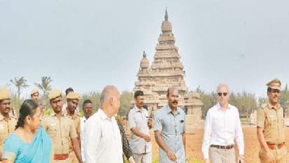 அங்கு, புராதன சின்னமான மாமல்லபுரம் கடற்கரை கோயிலுக்குச் சென்ற அவர், அங்குள்ள பல்லவர் கால சிற்பங்களை சுற்றிப் கண்டு ரசித்தார்.