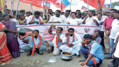 மாட்டு இறைச்சிக்கு தடை விதித்ததை கண்டித்து கிருஷ்ணகிரியில் மாட்டுக்கறி சாப்பிட்டு மோடி அரசிற்கு எதிராக விடுதலைச் சிறுத்தைகள் கட்சியினர் முழக்கங்களை எழுப்பினர்.