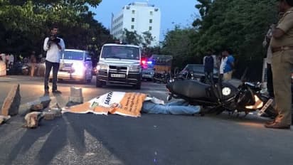 சென்னை சாந்தோம் நெடுஞாலையில் இருசக்கரவாகனத்தில் சென்ற வாலிபர் தண்ணீர் லாரி மோதி பரிதாபமாக உயிரிழந்தார்.