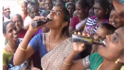 இதற்காக வித்தியாசமான முறையில் போராட முடிவு செய்த அந்த பகுதி பெண்கள் மதுக்கடைகளுக்கு எதிர்ப்பு தெரிவித்து மது குடிக்கும் போராட்டம் நடத்தினர்.