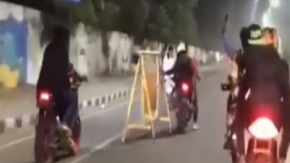 போக்குவரத்தை ஒழுங்கு படுத்துவதற்காக போலீசார் வைத்திருக்கும் தற்காலிக தடுப்புகளையே இருசக்கர வாகனத்தில் செல்லும் இளைஞர்கள், நெருப்புப் பொறி பறக்க இழுத்துச் செல்லும் அதிரவைக்கும் காட்சிகள் சமூக வலைத்தளங்களில் வைரலாக பரவி வருகின்றன.