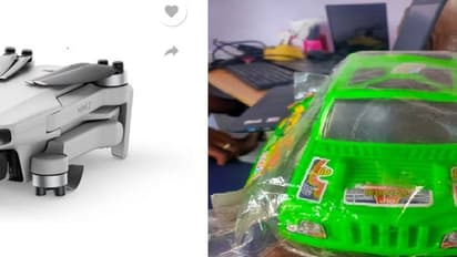 பார்சல் மிகவும் தட்டையாக இருந்ததால் சந்தேகமடைந்த மொய்தீன் மற்றும் சுரேஷ் ஆகியோர் வீடியோ பதிவு மூலம் பார்சலை ஆவலடன் பிரித்தனர். அப்போது பார்சலில் 80 ரூபாய் ட்ரோனுக்கு பதிலாக, 100 ரூபாய் பொம்மை கார் இருந்தது. இதனால் அதிர்ச்சியடைந்த இருவரும் டெலிவரி பாயைத் தொடர்பு கொண்டுள்ளனர்.
