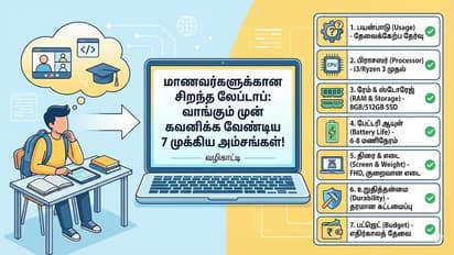 இன்றைய காலகட்டத்தில் மாணவர்களுக்கு லேப்டாப் என்பது தவிர்க்க முடியாத ஒரு தேவையாக மாறிவிட்டது. ஆன்லைன் வகுப்புகள், கோடிங், ப்ராஜெக்ட் வேலைகள் என அனைத்திற்கும் இது அவசியமாகிறது. எனவே லேப்டாப் வாங்கும் முன், உங்கள் பிள்ளைக்கு அது எதற்காகப் பயன்படப் போகிறது என்பதை முதலில் முடிவு செய்யுங்கள். சாதாரண பள்ளி வேலைகளுக்கு அடிப்படை மாடல்களே போதுமானது. ஆனால், கோடிங், கிராஃபிக் டிசைனிங் அல்லது வீடியோ எடிட்டிங் போன்ற தொழில்நுட்ப வேலைகளுக்கு அதிக திறன் கொண்ட லேப்டாப் தேவைப்படும்.