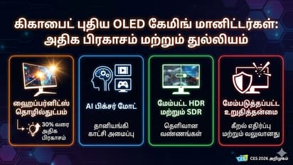 உலகின் முன்னணி கணினி வன்பொருள் நிறுவனமான கிகாபைட் (GIGABYTE), CES 2026 தொழில்நுட்பக் கண்காட்சியில் நான்கு புதிய OLED கேமிங் மானிட்டர்களை அறிமுகப்படுத்தியுள்ளது. இந்த புதிய மானிட்டர்கள் சிறந்த மற்றும் பிரகாசமான கிராபிக்ஸ் அனுபவத்தை வழங்குவதில் முக்கிய கவனம் செலுத்தியுள்ளன. OLED பேனல்களின் முழுத் திறனையும் பயன்படுத்தும் வகையில் வடிவமைக்கப்பட்டுள்ள இந்தத் திரைகள், மேம்பட்ட HDR மற்றும் SDR தரம், துல்லியமான வண்ணங்கள் மற்றும் ஆன்லைன் கேமர்களுக்குத் தேவையான பல அம்சங்களைக் கொண்டுள்ளன.