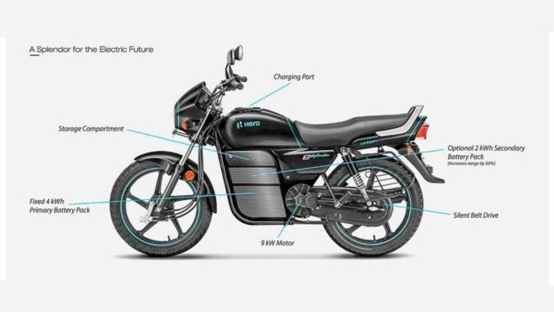 ஹீரோ ஸ்பிலெண்டர் எலெக்ட்ரிக் மாடலில் 4 கிலோவாட் ஹவர் பேட்டரி பேக் வழங்கப்பட்டு இருக்கிறது. இத்துடன் 9 கிலோவாட் மவுண்ட் செய்யப்பட்ட எலெக்ட்ரிக் மோட்டார் வழங்கப்பட்டு இருக்கிறது. இத்துடன் 2 கிலோவாட் ஹவர் பேட்டரியை வைத்துக் கொள்வதற்கான இடவசதியும் உள்ளது. கூடுதல் பேட்டரி சிங்கில் சார்ஜ் ரேன்ஜ்-ஐ 50 சதவீதம் வரை அதிகப்படுத்துகிறது.
