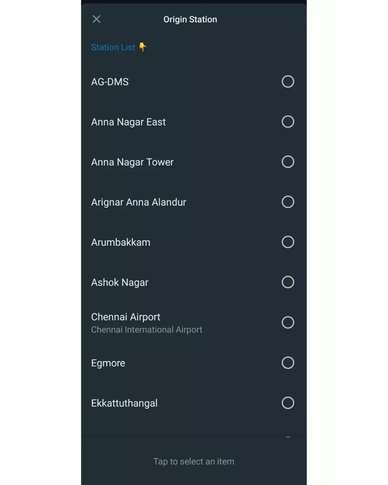 பயணிகள் ஏற்கனவே தங்களுக்குப் பிடித்த வழிகளைச் சேர்த்திருந்தால் ‘விரைவு முன்பதிவு அம்சத்தைப்’ பயன்படுத்தலாம். உங்கள் தோற்றம் மற்றும் சேருமிட நிலையங்களைத் தேர்வு செய்யவும். நிலையங்களின் பட்டியல் அகரவரிசையில் தோன்றும் என்பதை நினைவில் கொள்க. கூடுதல் விருப்பங்களைப் பார்க்க, நீங்கள் மீண்டும் மீண்டும் சாட்போட்டைப் பயன்படுத்த வேண்டியிருப்பதால், இதைப் பயன்படுத்துவதில் சிரமமாக இருக்கலாம்.