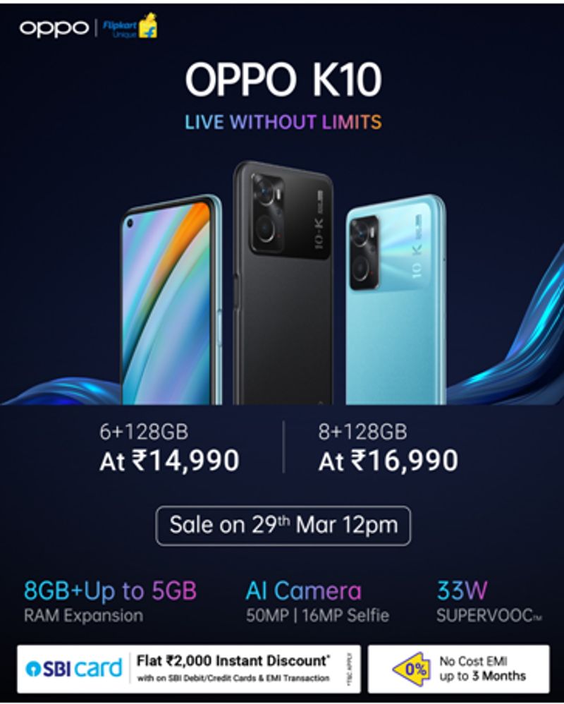 OPPO சமீபத்தில் தனது இ-காமர்ஸ் மையப்படுத்தப்பட்ட OPPO K10 மொபைலை சந்தையில் அறிமுகப்படுத்தியது. 6ஜிபி+128ஜிபி மாடலின் விலை வெறும் ரூ.14990 மற்றும் 8ஜிபி+128ஜிபி மாடல் ரூ.16990. OPPO K10 ஆன்லைன் சந்தையில் பெரும் போட்டியாளராக திகழ்கிறது. மார்ச் 29 முதல் Flipkart, OPPO ஆன்லைன் ஸ்டோர் மற்றும் தேர்ந்தெடுக்கப்பட்ட சில்லறை விற்பனையாளர்களிடம் OPPO K10 மொபைலை வாங்கலாம்.