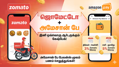 • திங்கள் முதல் வெள்ளி வரை: அமேசான் பே பேலன்ஸ் மூலம் பணம் செலுத்தினால், ஆர்டர் மதிப்பில் 3 சதவீதம் ஜொமேட்டோ மணியாகத் திரும்பக் கிடைக்கும்.