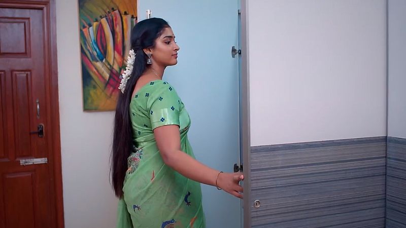 பிறகு தீபாவின் துணிகள் எதுவும் இன்னும் ரூமுக்கு வரவில்லை என்பதால் கார்த்திக் தன்னுடைய துணியை கொடுத்து மாற்றிக்கொள்ள சொல்ல தீபா தயங்கி நிற்பதை பார்த்து கார்த்திக் ஓ சாரி மறந்துட்டேன் நான் வெளியே போறேன் என்று கிளம்ப தீபா வேண்டாம் சார் நீங்க கண்ணு திறக்காமல் இருந்தால் போதும் என்று துணியை மாற்றிக் கொள்கிறாள்.