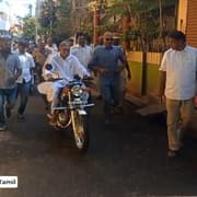 புதுச்சேரி முதலமைச்சர் ரங்கசாமி வழக்கம் போல் தனது யமஹா ஆர் எக்ஸ் 100 இருசக்கர வாகனத்தில் வந்து தனது வாக்கினை பதிவு செய்தார்.
