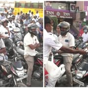 தமிழகம் முழுவதும் ஹெல்மெட் அணிய வேண்டியதன் அவசியம் குறித்து, பல்வேறு விழிப்புணர்வு நிகழ்ச்சிகளை போக்குவரத்து போலீஸார் மேற்கொண்டு வருகின்றனர். மேலும் சாலை விதிகளை மதிக்காமல் செல்லும் வாகன ஓட்டிகளுக்கு அபராதம் விதித்தும் வருகின்றனர்.