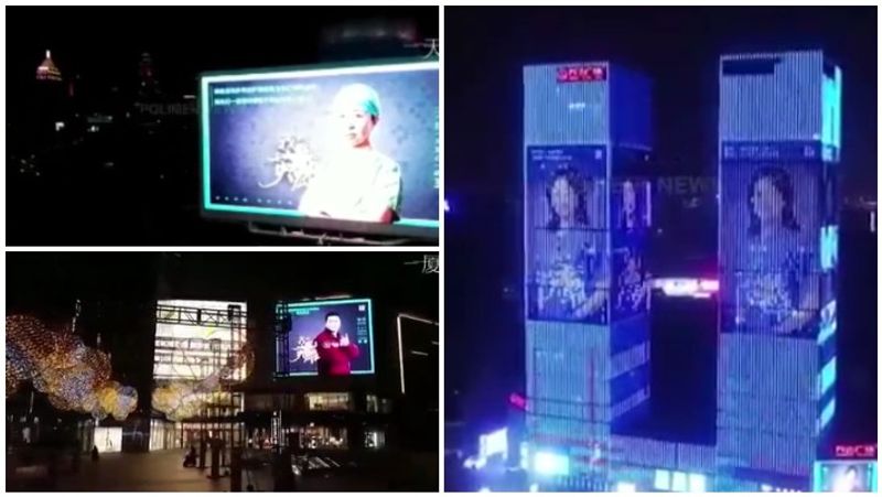 சீனாவில் கொரோனா வைரஸ் பரவும் போது சிறப்பாக பணியாற்றி மக்களின் உயிரை காப்பாற்றிய மருத்துவர்களை கௌரவிக்கும் விதமாக நாடு முழுவதும் பிரமாண்ட எல்இடி திரைகள் அமைக்கப்பட்டு மருத்துவர்களின் புகைப்படங்கள் அதில் ஒளிர விடப்பட்டுள்ளன . இது அந்நாட்டு மருத்துவர்களுக்கு சீனா வழங்கும் கௌரவமாக கருதப்படுகிறது. சுமார் 80 ஆயிரத்துக்கும் அதிகமான மக்கள் பாதிக்கப்பட்டதில் மூன்றாயிரம் பேர் மட்டுமே அதில் உயிரிழந்தனர் , கிட்டத்தட்ட அதில் 98% மக்களை மருத்துவர்கள் தங்கள் உயிரை கொடுத்து போராடி மீட்டுள்ளனர்.