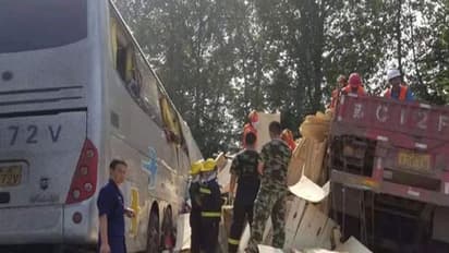 சீனாவில் லாரி மீது பேருந்து மோதி விபத்துக்குள்ளானது. இந்த விபத்தில் 36 பேர் சம்பவ இடத்திலேயே உடல் நசுங்கி உயிரிழந்தனர். மேலும், பலர் படுகாயங்களுடன் மருத்துவமனையில் அனுமதிக்கப்பட்டுள்ளனர்.