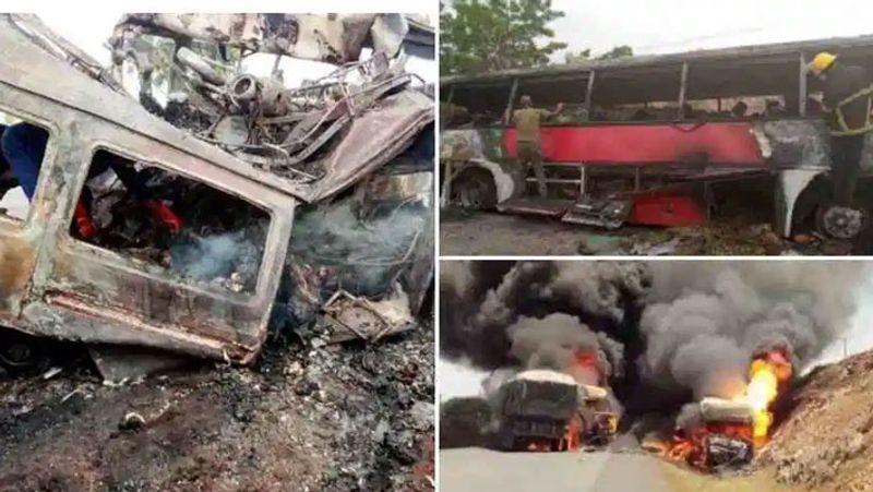 இரண்டு பேருந்துகளும் நேருக்கு நேர் மோதியதில் தீ பற்றியது. சிறிது நேரத்தில் தீ மளமளவென அனைத்து இடங்களிலும் பரவியது. இந்த கோர சம்பவத்தில் 35 பேர் உடல் கருகி துடிதுடித்து பரிதாபமாக உயிரிழந்தனர். மேலும், 40-க்கும் மேற்பட்டோர் படுகாயமடைந்தனர். இது தொடர்பாக மீட்புக்குழுவினருக்கும், தீயணைப்புத்துறைக்கும் தகவல் தெரிவிக்கப்பட்டது. சம்பவ இடத்திற்கு விரைந்த மீட்டுக்குழுவினர் படுகாயமடைந்தவர்களை மீட்டு மருத்துவமனைக்கு அனுப்பி வைத்தனர்.