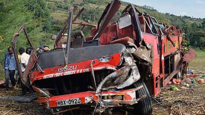 கென்யாவில் பள்ளத்தில் பேருந்து கவிழ்ந்து விபத்துக்குள்ளானது. இந்த விபத்தில் 50 பேர் சம்பவ இடத்திலேயே உயிரிழந்தனர். கென்யா தலைநகர் நைரோபியில் இருந்து மேற்கு பகுதியில் உள்ள காகமேகா நோக்கி பேருந்து ஒன்று 52 பயணிகளுடன் சென்றுக்கொண்டிருந்தது.