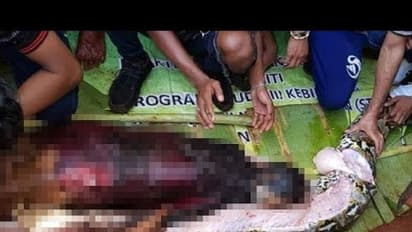 இந்தோனேஷியாவில் காய்கறிகள் பறிக்க தோட்டத்துக்குச் சென்ற பெண் ஒருவரை ராட்சத மலைப்பாம்பு உயிருடன் விழுங்கியது. இதையடுத்து பாம்பின் வயிற்றைக் கிழித்து அந்தப் பெண்ணை மீட்டபோது அவர் உயிர் இழந்திருந்தார்.