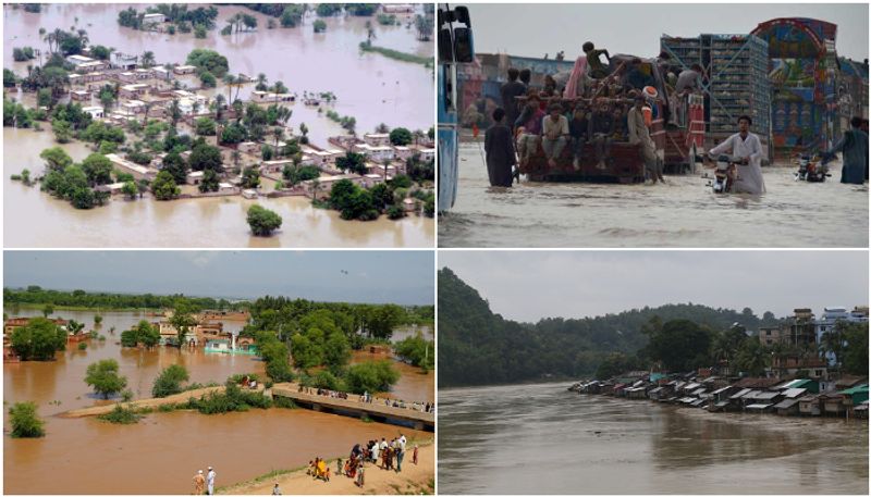 இதனால் ஆற்றை சுற்றியுள்ள கரையோர பகுதிகள் நீரில் மூழ்கி போயுள்ளன. மேலும் அந்த பகுதி முழுவதும் தனி தீவாக காட்சியளிக்கிறது. இதனிடையே அமெரிக்காவின் நாசா விண்வெளி ஆராய்ச்சி மையத்தின் மோடிஸ் செயற்கைக்கோள், பாகிஸ்தான் வெள்ள பாதிப்புகளை புகைப்படங்களாக எடுத்துள்ளது. அதில் தொடர் கனமழைக்கு முன்னபாக விவசாய நிலங்களாக இருந்த மிகப் பெரிய பகுதி, தற்போது வெள்ளநீரால் ஒரு பெரிய ஏரியாக உருவாகி, காட்சியளிக்கிறது.
