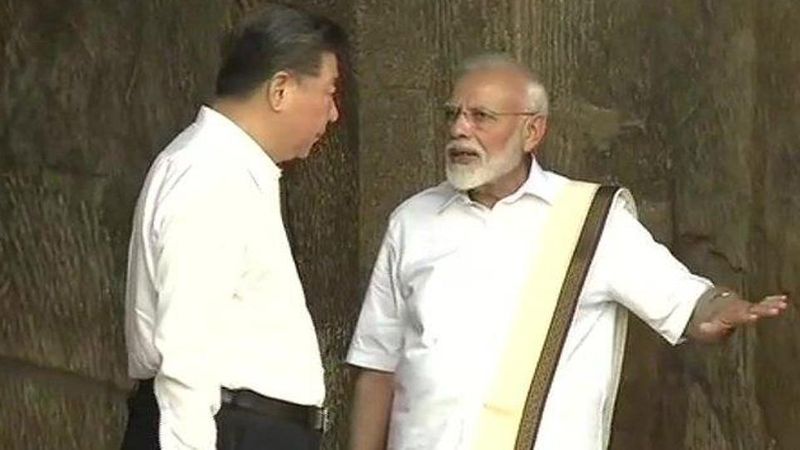 இதனையடுத்து சாலைமார்கமான அவர் மாமல்லபுரம் சென்றார், அங்கு அவருக்கு சிறப்பான வரவேற்பு அளிக்கப்பட்டது. அங்கு இந்திய சிற்பக் கலைகளை கண்டு வியந்தார். அதனை அடுத்து இரு நாடுகளுக்கும் இடையேயான பேச்சுவார்த்தை மாமல்லபுரத்தில் நடைபெற்றது. பின்னர் கோவலத்தில் ஏற்பாடு செய்யப்பட்டிருந்த கலைப் படைப்புகளை பார்வையிட்டார், அப்போது அவரின் உருவம் பதித்த பட்டு சேலையை நெசவாளர்கள் காண்பித்தனர். அதனைக் கண்டு அதிபர் ஜி ஜின்பிங் ஸ்தம்பித்துப் போனார். இந்நிலையில் பரமக்குடியில் உள்ள மகாகவி பாரதியார் கூட்டுறவு நெசவாளர் சங்கத்தின் சார்பில் மோடி, ஜி ஜின்பிங் முகம் பதித்த 3டி பட்டு சேலையை உருவாக்கி சாதனைபடைத்துள்ளனர்.