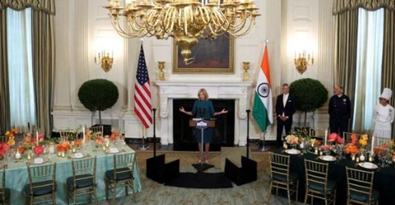 பிரதமர் மோடி சைவ உணவு சாப்பிடும் பழக்கம் உடையவர். எனவே, பிரதமர் மோடிக்கான உணவு வகைகளை தயாரிக்கும் பொருட்டு, வெள்ளை மாளிகை ஊழியர்களுடன் இணைந்து பணியாற்றவும், சைவ மெனுவை தயாரிப்பதற்கும், தாவர அடிப்படையிலான உணவு வகைகளில் நிபுணத்துவம் பெற்ற சமையல் கலைஞர் நினா கர்ட்டிஸ் என்பவரை கேட்டுக் கொண்டதாக ஜில் பைடன் தெரிவித்தார். இருப்பினும், விருந்தினர்களுக்கான மெனுவில் மீனும் இருந்தது.