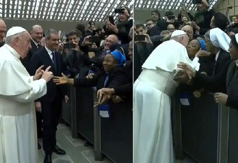அப்போது பார்வையாளர் வரிசையில் நின்றிருந்த கன்னியாஸ்திரி ஒருவர் போப்பிடம் எனக்கு முத்தம் தருவீர்களா ? என கேட்டார்.