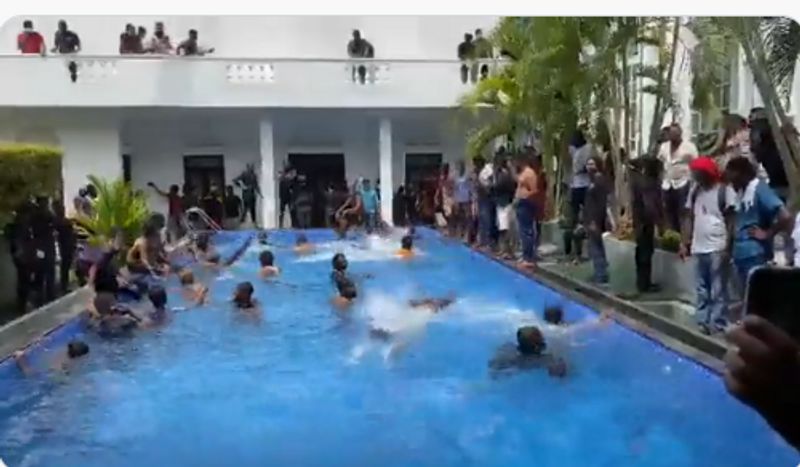இந்நிலையில் இன்று காலைமுதல் அதிபர் மாளிகைமுன் நடந்து வரும் போராட்டம் கட்டுப்பாட்டை மீறியது. போலீஸாரின் தடுப்புகளை மீறி, அதிபர் மாளிகைக்குள் மக்கள் படையெடுத்தனர். அதிபர் மாளிகைக்குள் படையெடுத்த மக்கள், அங்குள்ள நீச்சல் குளத்தில் குளித்தனர்.