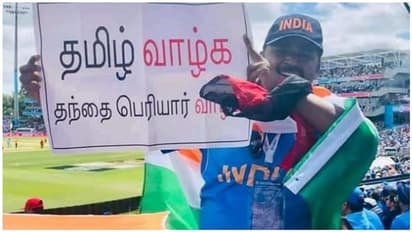 இந்நிலையில் இந்தியா, இங்கிலாந்து விளையாட்டை பார்க்க சென்ற ரசிகர் ஒருவர், தமிழ் வாழ்க, தந்தை பெரியார் வாழ்க என்ற பதாகையுடன் நின்றார். தேசியக் கொடியை போர்த்தியிருந்த அவர், கையில் திராவிடர் கழகத்தின் கொடியை வைத்திருந்தார். சிலர் தமிழ் வாழ்க, தந்தை பெரியார் வாழ்க என முழக்கத்தையும் எழுப்பினர். அந்த பதாகை வைத்திருந்தவரின் புகைப்படம் தற்போது வைரலாக பரவி வருகிறது.