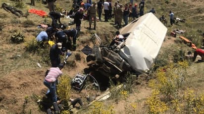 துருக்கியில் அகதிகளை ஏற்றி சென்ற பேருந்து பள்ளத்தில் கவிழ்ந்து விபத்துக்குள்ளானது. இந்த விபத்தில் 17 பேர் உடல் நசுங்கி பரிதாபமாக உயிரிழந்தனர்.