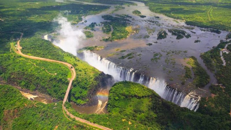 ஆப்பிரிக்கக் கண்டத்தின் நான்காவது பெரிய நதியான ஜம்பேசி (Zambezi) நதியிலுள்ள விக்டோரியா நீர்வீழ்ச்சி ஜிம்பாப்வே, ஜாம்பியா நாடுகளின் எல்லையில் 1.7 கிலோமீட்டர் அகலத்துக்கு, 108 மீட்டர் உயரத்துக்கு அமைந்துள்ளது. 1855 ஆம் ஆண்டில் டேவிட் லிவிங்ஸ்டன் கண்டுபிடித்தார். விக்டோரியா நீர்வீழ்ச்சி என்ற பெயர் இங்கிலாந்தின் விக்டோரியா மகாராணியின் நினைவாக வைக்கப்பட்டுள்ளது என்றும் கூறுகின்றனர்.