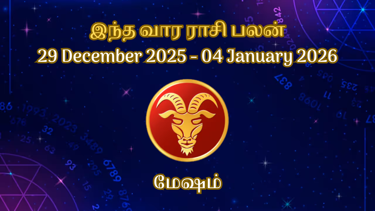 Mesha Rasi This Week Rasi Palan: டிசம்பர் 29 முதல் ஜனவரி 04 ஆம் தேதி வரையிலான காலக்கட்டம் மேஷ ராசிக்காரர்களுக்கு எப்படி இருக்கப்போகிறது என்பது குறித்த வார ராசிப்பலன்கள் பற்றி இந்த பதிவில் விரிவாகப் பார்க்கலாம்.