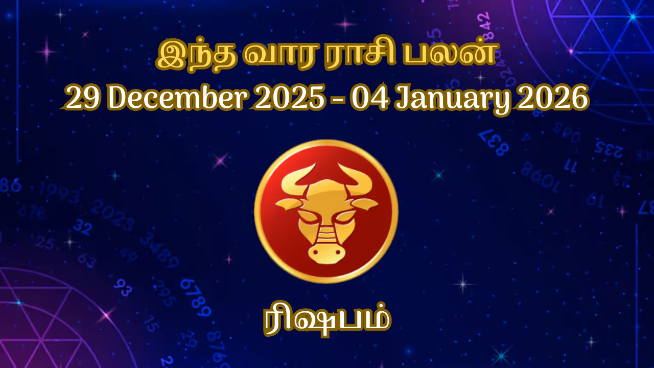 Rishaba Rasi This Week Rasi Palan: டிசம்பர் 29 முதல் ஜனவரி 04 ஆம் தேதி வரையிலான காலக்கட்டம் ரிஷப ராசிக்காரர்களுக்கு எப்படி இருக்கப்போகிறது என்பது குறித்த வார ராசிப்பலன்கள் பற்றி இந்த பதிவில் விரிவாகப் பார்க்கலாம்.