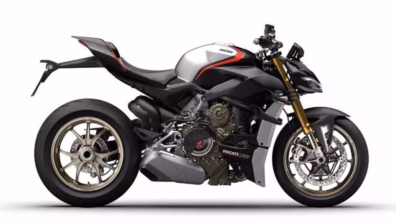 இத்துடன் அட்ஜஸ்ட் செய்யக் கூடிய அலுமினியம் மற்றும் CNC மெஷின்டு ஃபூட் பெக்ஸ், கார்பன் முன்புற மட்கார்டு, லித்தியம் அயன் பேட்டரி வழங்கப்பட்டு இருக்கிறது. இந்த மாடலில் 1103சிசி, V4 சிலிண்டர், லிக்விட் கூல்டு டெஸ்மோசெடிசி ஸ்டிரேடேல் என்ஜின் வழங்கப்பட்டு இருக்கிறது. இந்த என்ஜின் 208 ஹெச்.பி. பவர், 123 நியூட்டன் மீட்டர் டார்க் இழுவிசையை வெளிப்படுத்துகிறது.