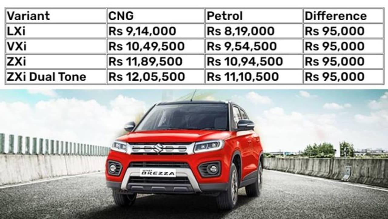 பிரெஸ்ஸா சிஎன்ஜியின் ஒவ்வொரு மாறுபாடும் ஒவ்வொரு விலையை கொண்டுள்ளது. ரூ.95,000 பிரீமியத்தில் வருகிறது. அதன் முழு பட்டியல் கொடுக்கப்பட்டுள்ளது.