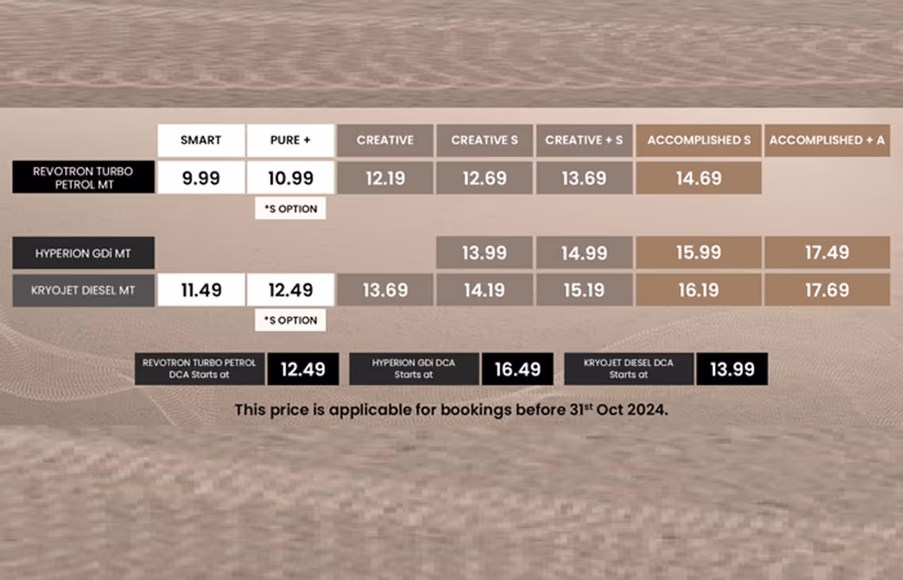 இருப்பினும், டாடா மோட்டார்ஸ் இன்னும் முழுமையான விலை விவரங்களை வெளியிடவில்லை. சில DCT வேரியண்ட்களின் விலைகளை வெளியிடப்படவில்லை.