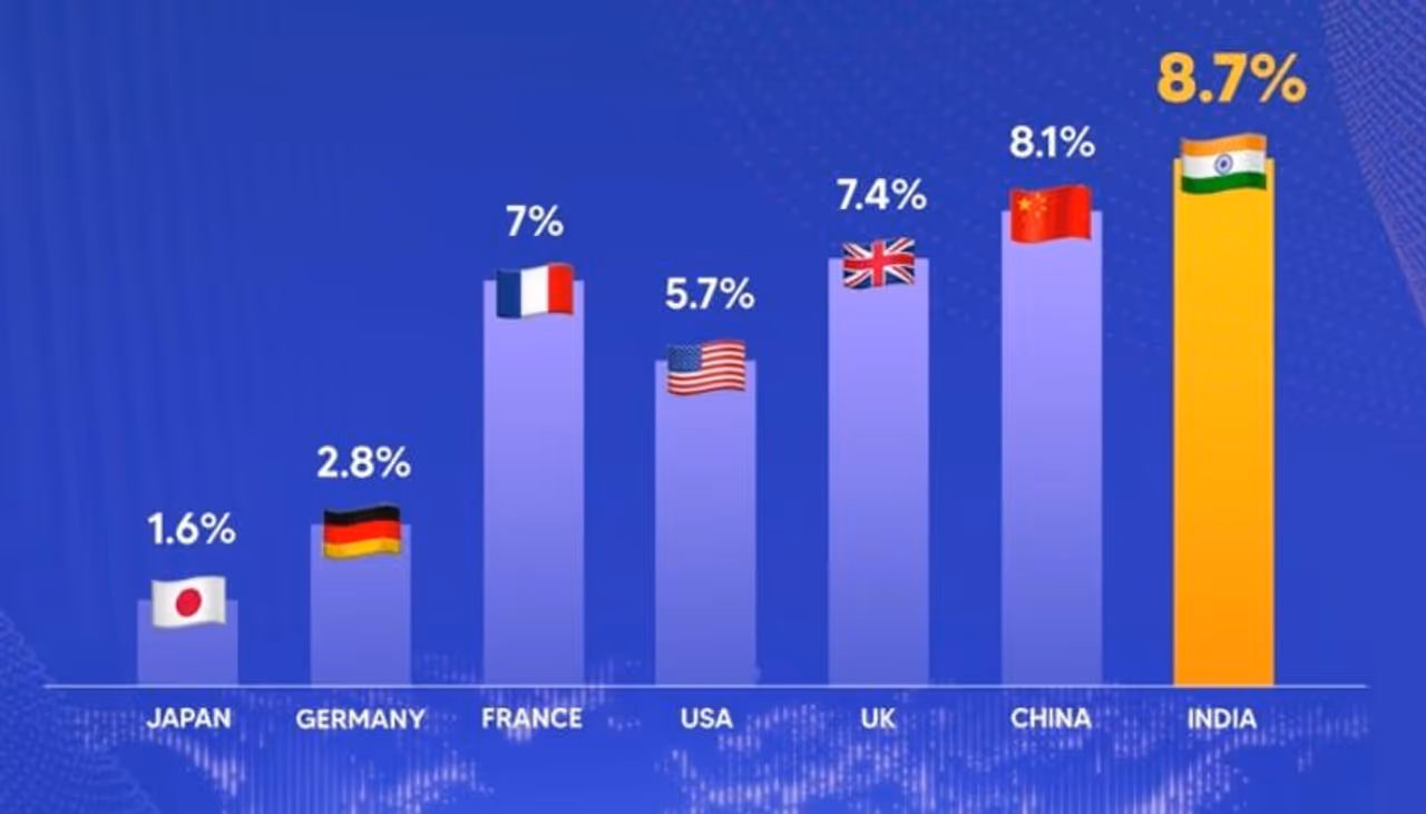 உலகளவில் வேகமாக வளரும் பொருளாதாரத்தைக் கொண்ட நாடுகளில் இந்தியா முன்னணியில் இருக்கிறது.கடந்த நிதியாண்டில் 8.7 சதவீதம் பொருளாதார வளர்ச்சி பெற்று உலக நாடுகளின் பொருளாதார வளர்ச்சியில் இந்தியா மிஞ்சி நிற்கிறது.