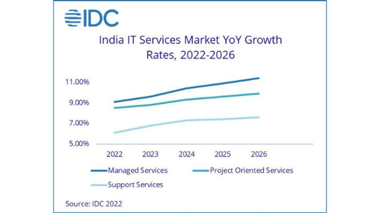 ஏனெனில் நிறுவனங்கள் தங்கள் டிஜிட்டல் மாற்ற முதலீடுகளைத் தொடரும் என்றும், பொருளாதார மந்தநிலை காரணமாக கணிசமான தாக்கத்தை எதிர்கொள்ளாது என்றும் எதிர்பார்க்கப்படுகிறது. ஐடி & பிசினஸ் சர்வீசஸ் சந்தை 2021-2026 க்கு இடையில் 8.3% CAGR இல் வளரும். 2026 ஆம் ஆண்டின் இறுதியில் 20.5 பில்லியன் அமெரிக்க டாலர்களை எட்டும் என்றும் கணிக்கப்பட்டுள்ளது. ஐடிசி ஐடி & பிசினஸ் சர்வீசஸ் சந்தையை மூன்று முதன்மை சந்தைகளாக வகைப்படுத்துகிறது. அவை திட்டம் சார்ந்த, நிர்வகிக்கப்பட்ட சேவைகள் மற்றும் ஆதரவு சேவைகள் ஆகும்.