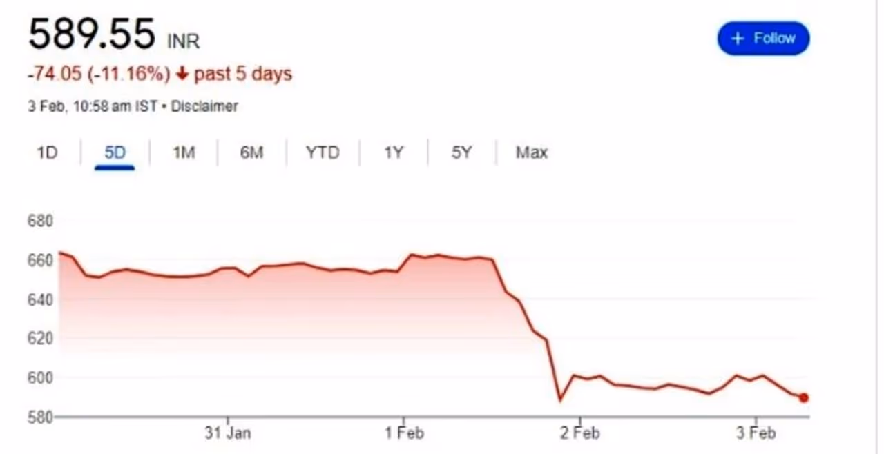 ஜனவரி 24ம் தேதி எல்ஐசி நிறுவனத்தின் ஒரு பங்கு மதிப்பு ரூ.702.10 பைசாவாக இருந்தது, இது நேற்றை வர்த்தகம் முடிவில் ரூ.599.10 பைசாவாக இருக்கிறது. ஏறக்குறைய ஒரு பங்கிற்கு ரூ.103 இழப்பு முதலீட்டாளர்களுக்கு ஏற்பட்டுள்ளது.