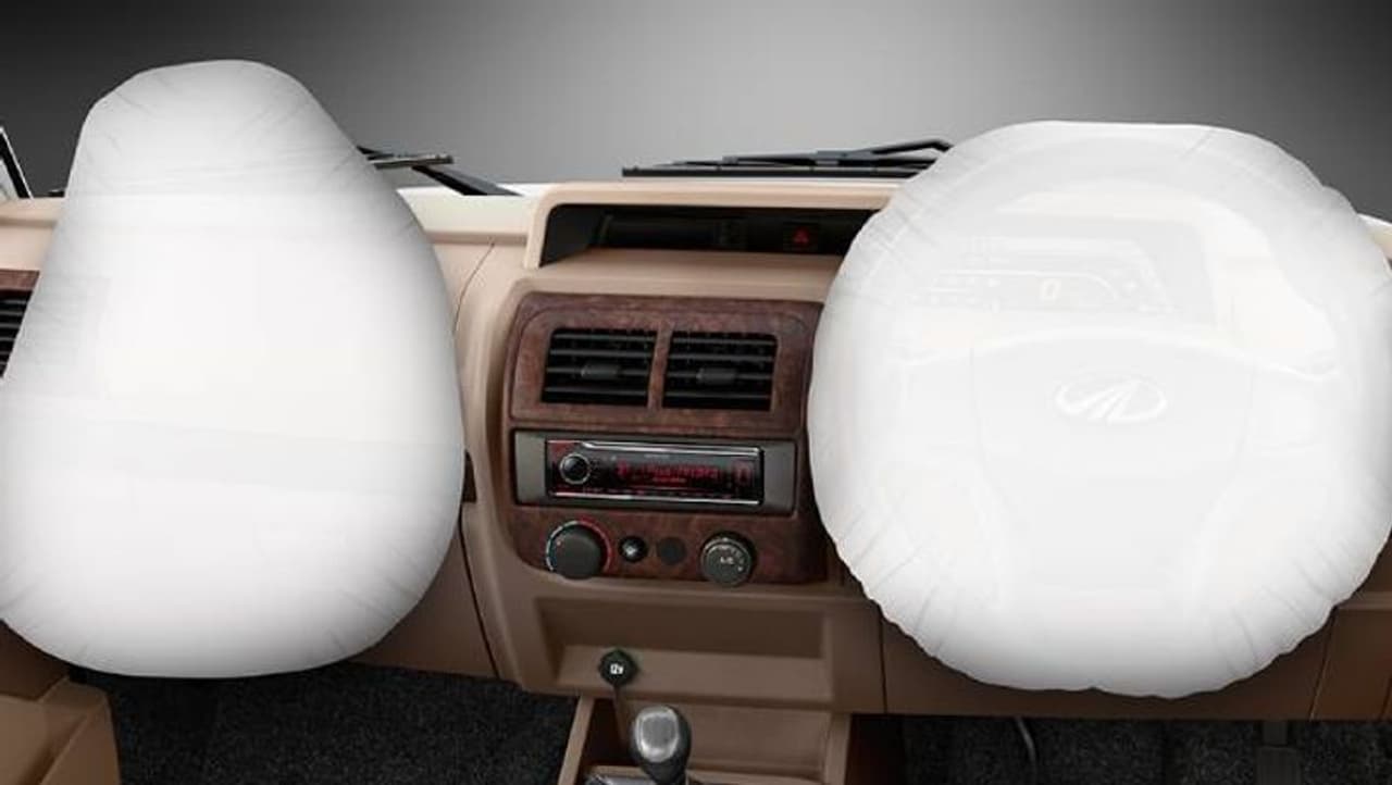 ஏர்பேக் வழங்கியதோடு பொலிரோ மாடலின் உள்புறமும் சிறு மாற்றங்கள் செய்யப்பட்டுள்ளது. முந்தைய மாடலில் பயணர் சைடு டேஷ்போர்டு பகுதியில் பெரிய கிராப் ரெயில் வழங்கப்பட்டு இருந்தது. தற்போது இது வழக்கமான டேஷ்போர்டு பேனலாக மாற்றப்பட்டு ஃபாக்ஸ் வுட் கார்னிஷ் செய்யப்பட்டு உள்ளது.