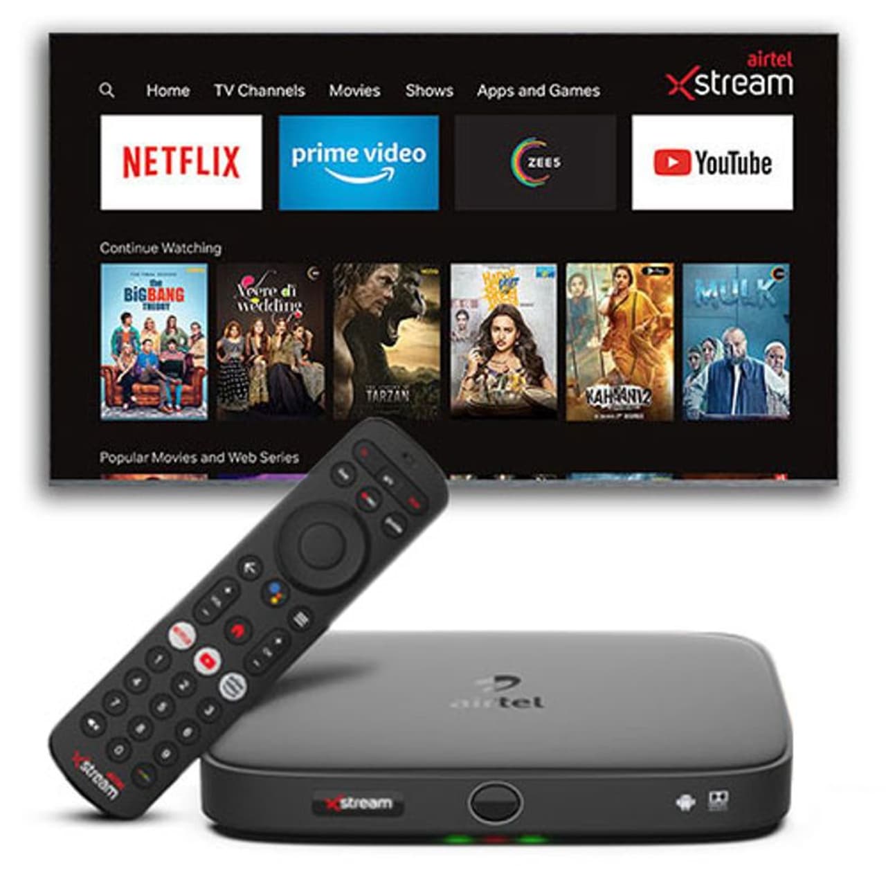 ஏர்டெல் அதை எல்லாம் உணர்ந்ததால் தான் அதன் புதிய ஏர்டெல் எக்ஸ் ஸ்ட்ரீம் பாக்ஸ் மூலம் இந்த பிரச்சினைக்கு ஒரு தீர்வைக் கொண்டு வந்துள்ளது. இது ஒரு ஸ்மார்ட் செட் - டாப் பாக்ஸ், இது பயனாளர்கள் தங்களது டி.வி.யில் சேனல்கள் மற்றும் வெப் சீரிஸ் இரண்டையும் பார்க்க வழி செய்கிறது. ஒரு சிறிய செட்-டாப் பாக்ஸ் மற்றும் ஃபயர்ஸ்டிக் மூலமாக அந்த வேலை கச்சிதமாக நடைபெறுகிறது. இத்துடன் டிஸ்னி + ஹாட்ஸ்டார், அமேசான் பிரைம் வீடியோ, ஜீ 5 போன்ற ஸ்ட்ரீமிங் தளங்களுக்கு முன்னதாகவே இணைக்கப்பட்டுள்ளது. அதே நேரத்தில், நீங்கள் டி.டி.எச் மூலம் 500+ டிவி சேனல்களையும் கண்டு ரசிக்கலாம். உண்மையில், ஏர்டெல் எக்ஸ் ஸ்ட்ரீம் பயன்பாடானது 10,000 க்கும் மேற்பட்ட திரைப்படங்கள் மற்றும் நிகழ்ச்சிகளுடன் கிடைக்கிறது.