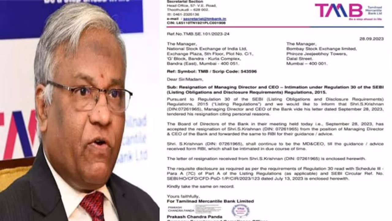 இந்நிலையில், தமிழ்நாடு மெர்க்கன்டைல் வங்கியின் சிஇஓ கிருஷ்ணன் தனது பதவியை திடீரென ராஜினாமா செய்துள்ளார். தனிப்பட்ட காரணங்களுக்காக ராஜினாமா செய்வதாக கடிதத்தில் குறிப்பிட்டுள்ளார். அவரது விலகல் கடிதத்தை தமிழ்நாடு மெர்க்கன்டைல் வங்கி நிர்வாகக் குழு ஏற்றுக் கொண்டுள்ளது. இன்னும் இரண்டு ஆண்டுகள் பணிக்காலம் இருக்கும் நிலையில் கிருஷ்ணன் தனது பதவியை ராஜினாமா செய்துள்ளது குறிப்பிடத்தக்கது.