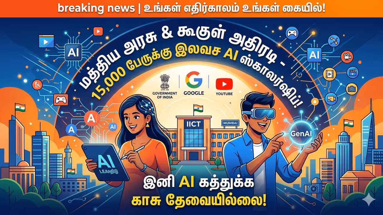 இன்றைய டிஜிட்டல் யுகத்தில், செயற்கை நுண்ணறிவு (AI) என்பது வெறும் தொழில்நுட்பம் மட்டுமல்ல, அது ஒரு வாழ்க்கைத் தேவையாக மாறிவிட்டது. இதனை உணர்ந்த மத்திய தகவல் மற்றும் ஒளிபரப்பு அமைச்சகம் (MIB), மும்பையில் உள்ள இந்தியன் இன்ஸ்டிடியூட் ஆஃப் கிரியேட்டிவ் டெக்னாலஜிஸ் (IICT) உடன் இணைந்து ஒரு மாபெரும் திட்டத்தைத் தொடங்கியுள்ளது. உலகப் புகழ்பெற்ற கூகுள் மற்றும் யூடியூப் நிறுவனங்களுடன் கைகோர்த்து, சுமார் 15,000 மாணவர்களுக்கு AI பயிற்சி மற்றும் உதவித்தொகை வழங்கப்பட உள்ளது.
