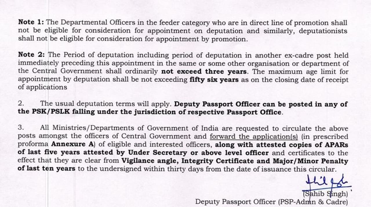 இந்த பணியிடங்களுக்கு விண்ணப்பிப்பவர்கள் அரசால் அங்கீகரிக்கப்பட்ட பல்கலைக்கழகத்தில் பட்டம் பெற்றிருக்க வேண்டும். மேலும் விண்ணப்பத்தாரர்களின் வயது வரம்பு 56 ஐ கடந்து இருக்க கூடாது. Passport Officer மற்றும் Assistant Passport Officer பதவிகள் தற்போது நிரப்பப்படுகின்றன. நாடு முழுவதும் 24 பணியிடங்கள் காலியாக உள்ளன. இதில் தமிழகத்தில் மட்டும் ஒரு பணியிடம் காலியாக உள்ளது.