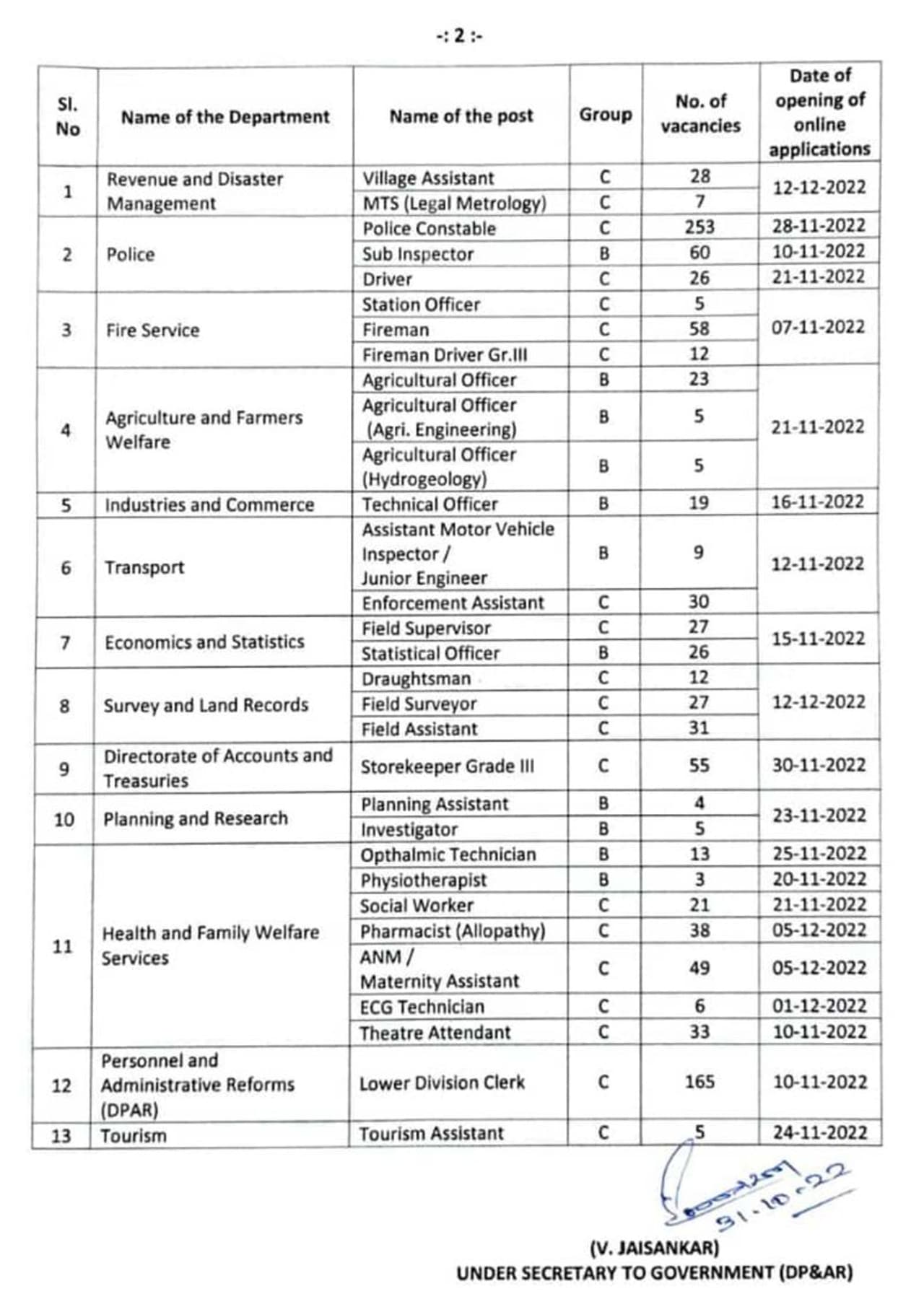 வருவாய்த்துறையில் கிராம உதவியாளர் 28, எம்.டி.எஸ். 7 பணியிடங்களுக்கு வருகிற டிசம்பர் 12-ந் தேதி முதலும், காவல்துறையில் கான்ஸ்டபிள் 253 பணிக்கு வருகிற 28-ந் தேதி, சப்-இன்ஸ்பெக்டர் பணிக்கு 60 பேருக்கு வருகிற 10-ந் தேதி, டிரைவர் 26 பேர் பணிக்கு வருகிற 21-ந் தேதி முதல் விண்ணப்பிக்கலாம்.