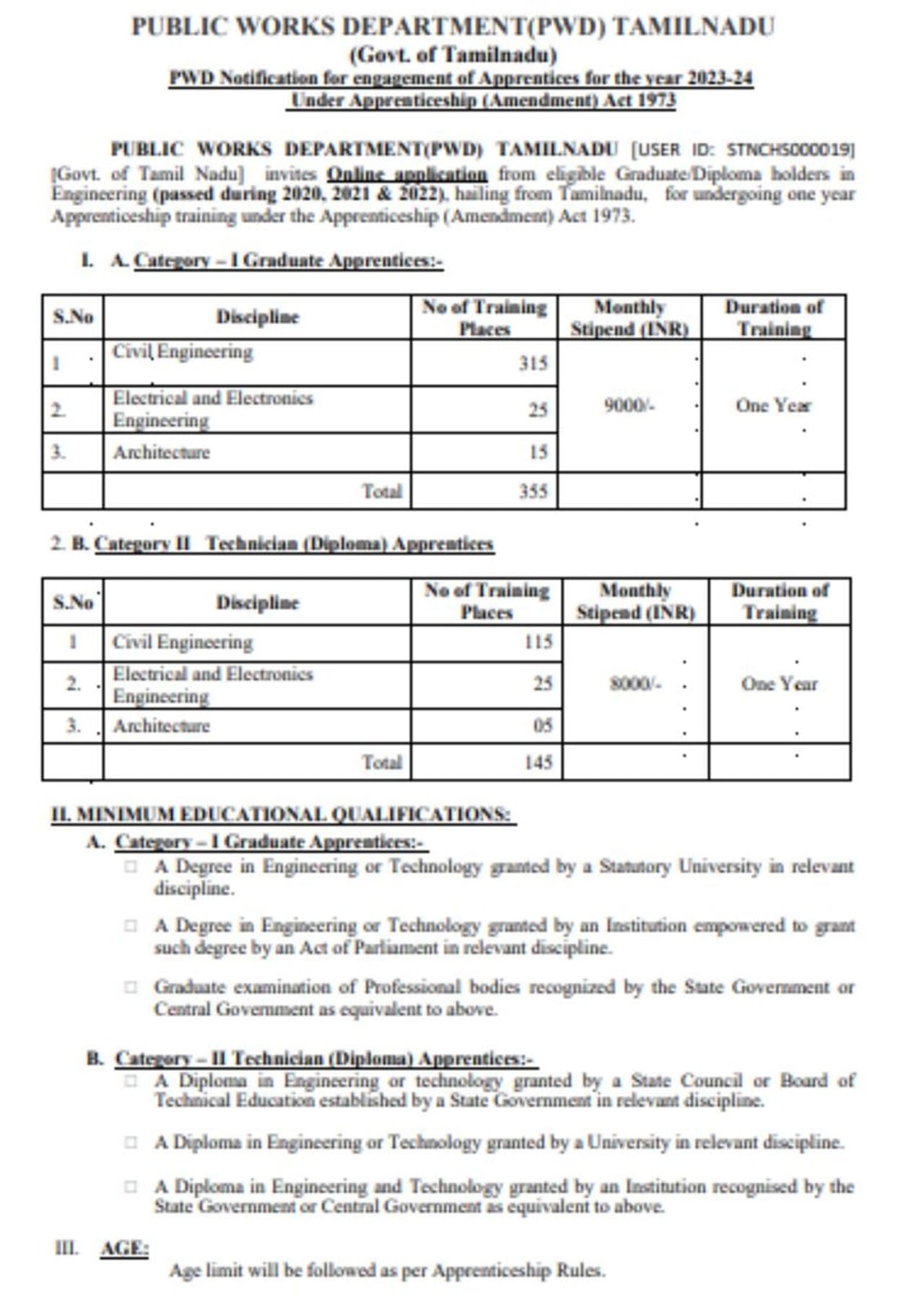 E, B.Tech, Diploma விண்ணப்பதாரர்கள் தங்களின் கிராஜுவேட் அப்ரெண்டிஸ், டிப்ளமோ அப்ரெண்டிஸ் வேலைக்கு விண்ணப்பிக்கலாம் என்று அறிவுறுத்தப்படுகிறார்கள்.