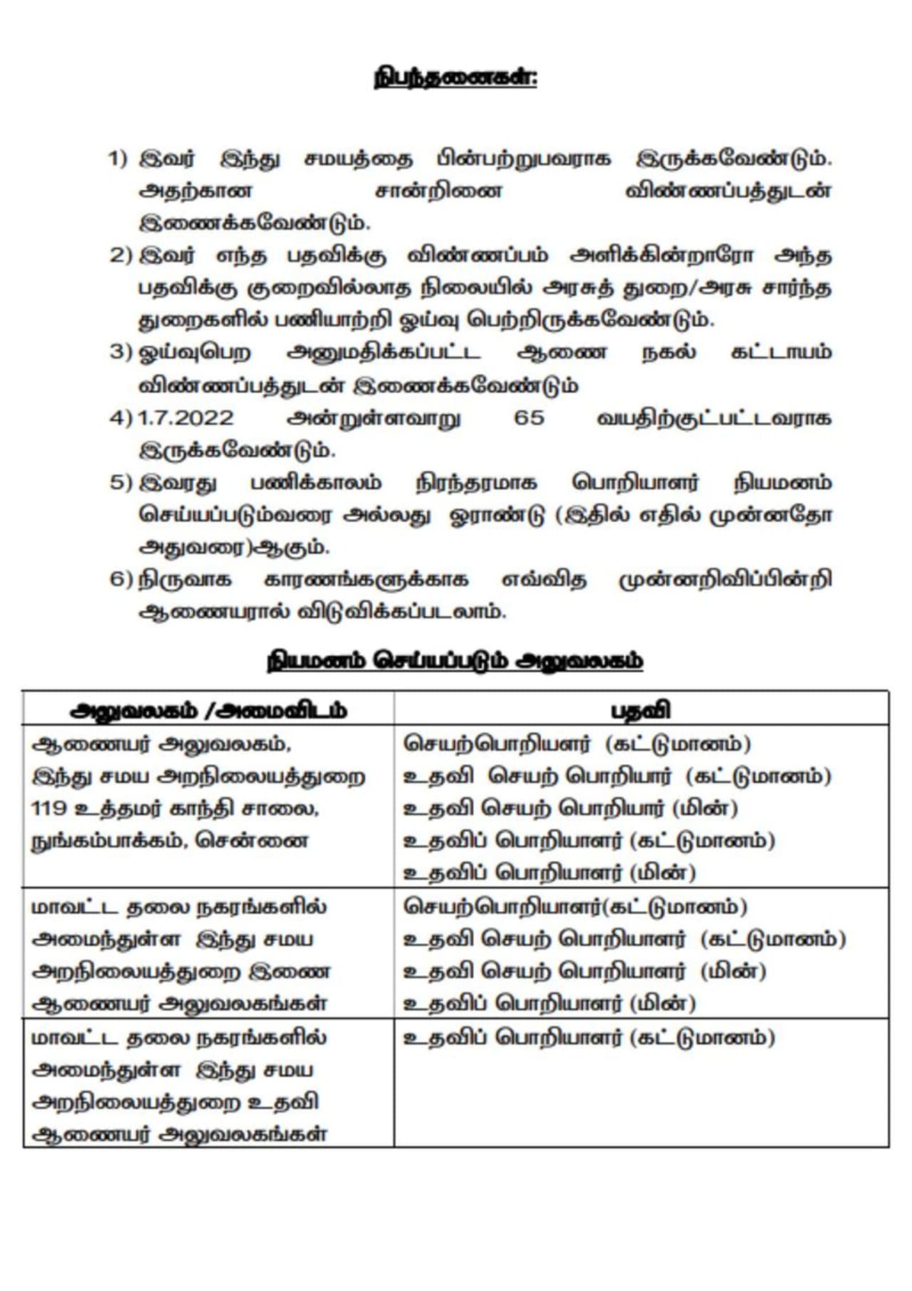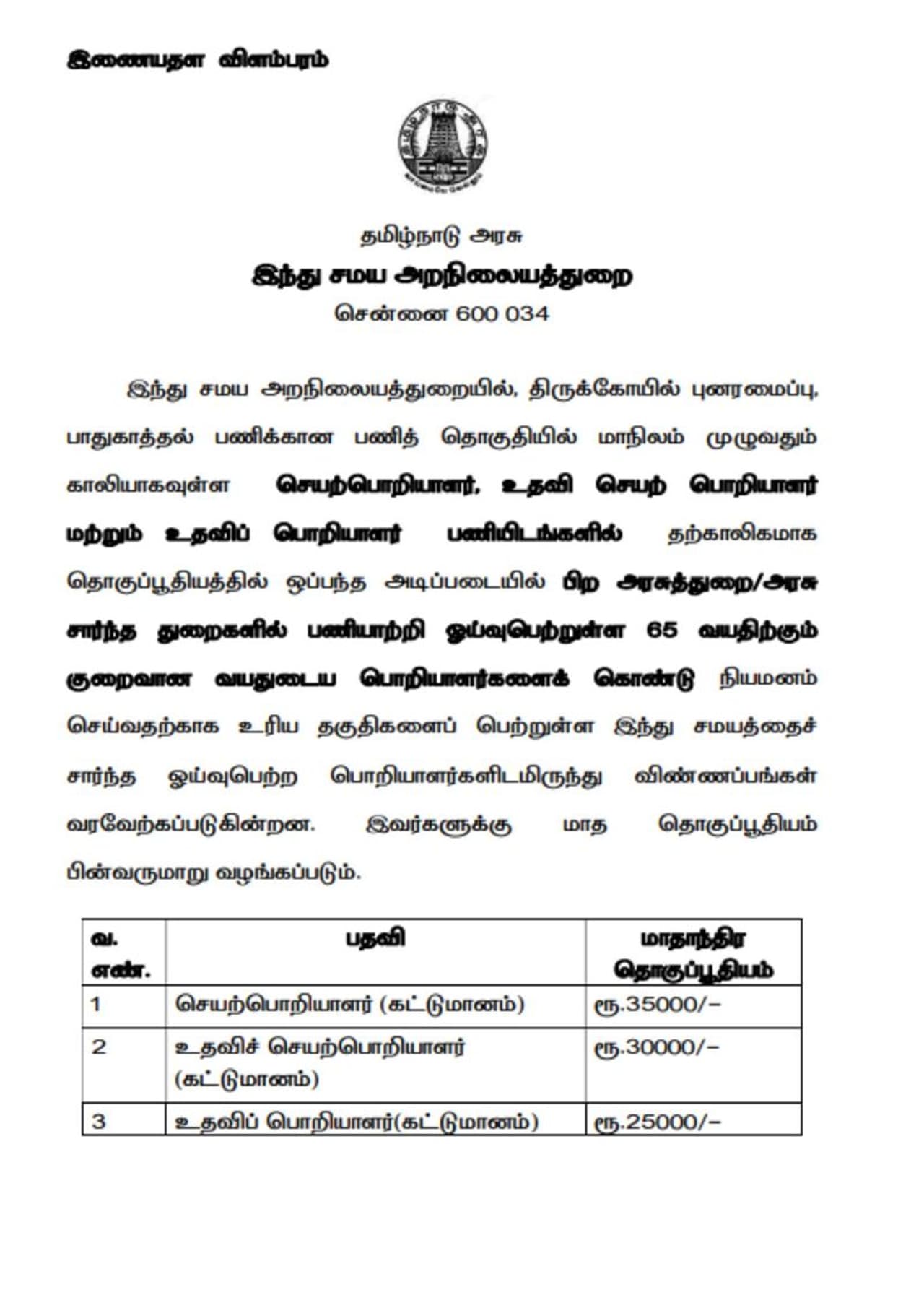 இந்து சமய மற்றும் அறநிலையத்துறை வேலை அறிவிப்பை வெளியிட்டு உள்ளது.