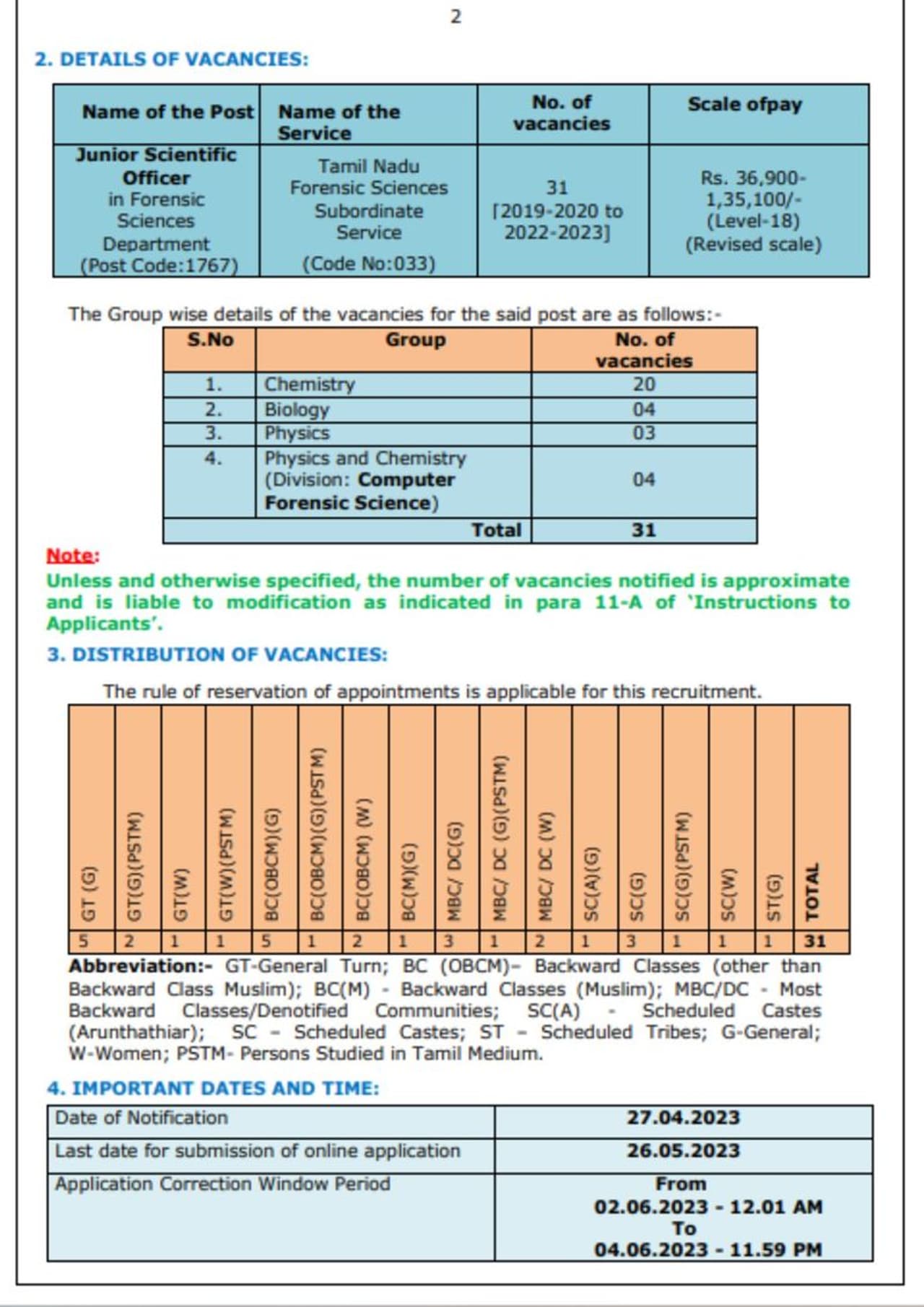M.Sc., (Forensic Science) பட்டம் மற்றும் பாடத்தில் பட்டம் ஆகும். மேலும் இதுபற்றிய விவரங்கள் அதிகாரப்பூர்வ அறிவிப்பில் தெரிவிக்கப்பட்டுள்ளது. அல்லது M.Sc., பட்டம் குழுவிற்கான பாடத்தில் அவர் /அவள் நியமிக்கப்படுவதற்கு கீழே உள்ள விளக்கத்தில் காட்டப்பட்டுள்ளது. மற்ற விஷயங்கள் சமமாக இருந்தால், M.Sc., (Forensic Science) பட்டம் பெற்ற ஒருவருக்கு முன்னுரிமை அளிக்கப்படும்.