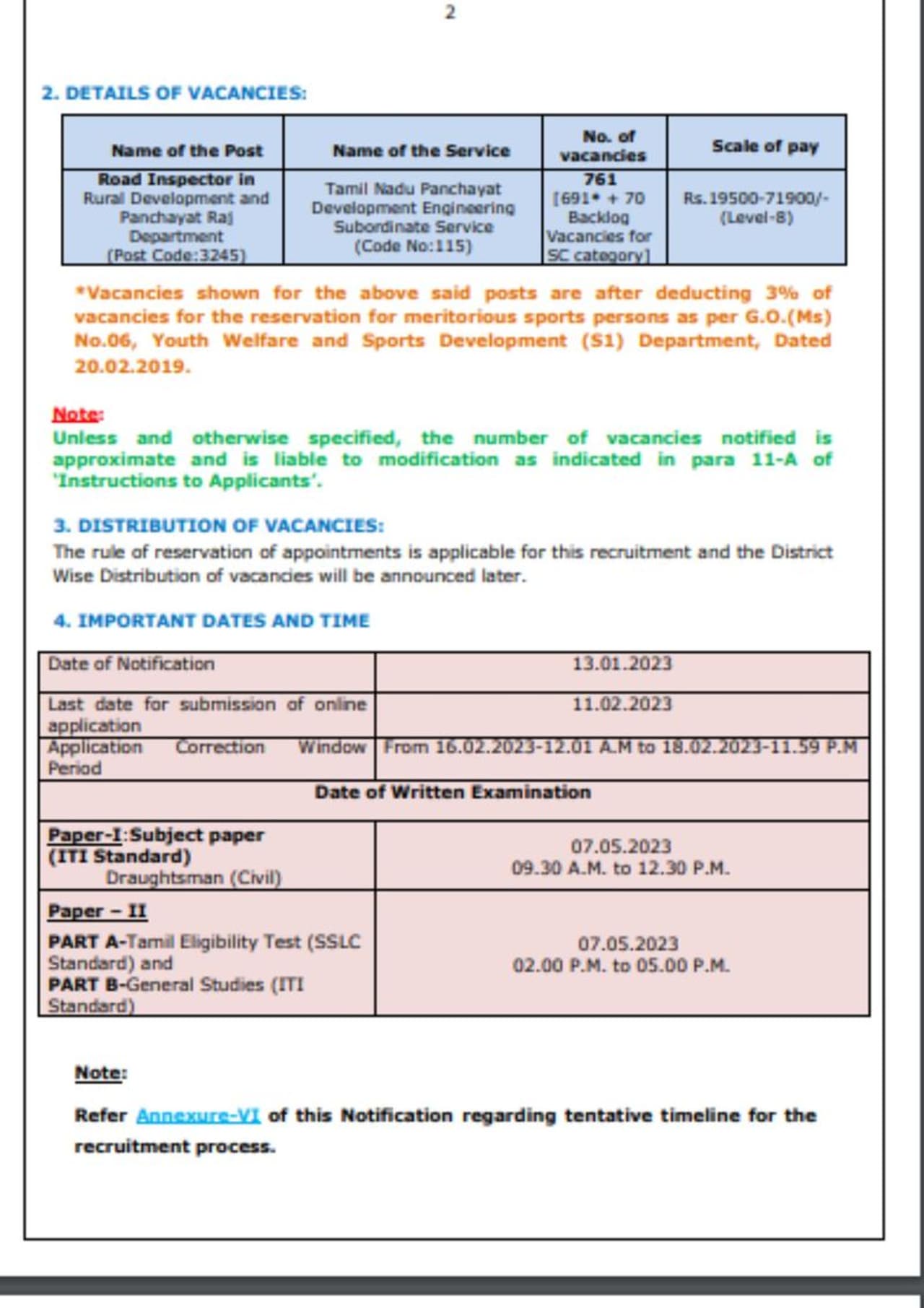 ரோடு இன்ஸ்பெக்டர் - 761 [691* + 70 SC பிரிவினருக்கான பின்னடைவு காலியிடங்கள்]